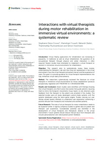 Interactions with Virtual Therapists during Motor Rehabilitation in Immersive Virtual Environments: A Systematic ReviewCrowe, Stephanie, Yousefi, Mahgol, Shahri, Bahareh, Piumsomboon, Thammathip and Hoermann, Simon (2024) Interactions with Virtual Therapists during Motor Rehabilitation in Immersive Virtual Environments: A Systematic Review. Frontiers in Virtual Reality, 5. ISSN 2673-4192 |