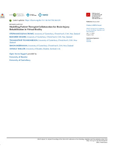 Modelling Patient-Therapist Collaboration for Brain Injury Rehabilitation in Virtual RealityCrowe, Stephanie, Shahri, Bahareh, Piumsomboon, Thammathip, Hoermann, Simon and Waller, Annalu (2024) Modelling Patient-Therapist Collaboration for Brain Injury Rehabilitation in Virtual Reality. Adjunct Proceedings of the 32nd ACM Conference on User Modeling, Adaptation and Personalization. pp. 437-444. |