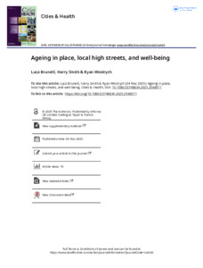 Ageing in place, local high streets and well-beingBrunelli, Luca, Smith, Harry and Woolrych, Ryan (2025) Ageing in place, local high streets and well-being. Cities and Health. ISSN 2374-8842Item availability may be restricted. |