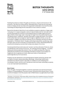 Botox Thoughts: Katie OrtonJackson, Deborah (2025) Botox Thoughts: Katie Orton. Govan Project Space. |