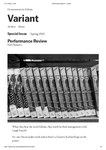 Performance ReviewClements, Neil (2025) Performance Review. Variant, Spring (2025). pp. 80-82. ISSN 09548815Item availability may be restricted. |