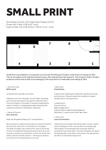 Small PrintCairns, Brian (2025) Small Print. New Glasgow Society, 1307 Argyle Street, Glasgow, Scotland, 15 August - 17 August 2025 [Show/Exhibition] |