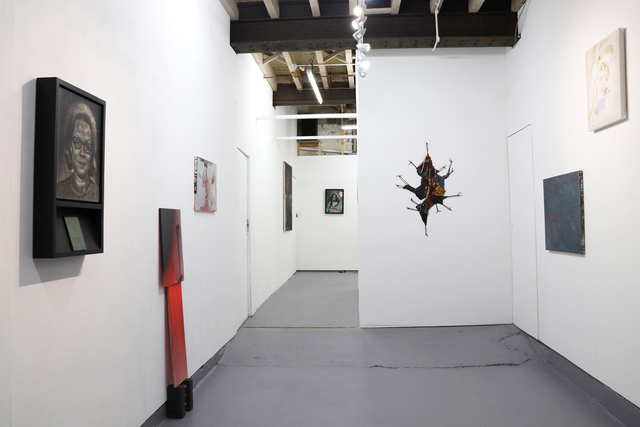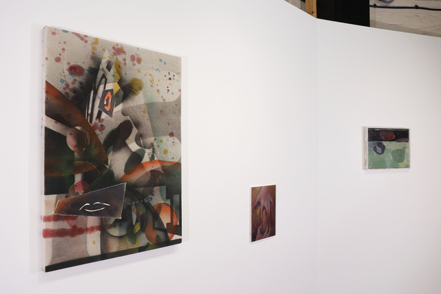 Artists: Reece Adair, Keith Ashcroft, David Ballantyne, Andrew Bracey, Kate Dunn, Simon Foxall, David Gledhill, Gareth Griffith, Mary Lou Lawless-Gill, Andrea Medjesi-Jones, Dougal McKenzie, Paula Newton, Alex Roberts, Wayne Robinson, Luke Skiffington, Geraldine Swayne, Michael Stubbs, Mikey Thomas The Problem with People is an exhibition of 18 painters, focusing on different ways that artists deal with the figure in painting today. The title refers to the difficulties and challenges often associated with the figure in painting, both in a literal or representational sense, but also in philosophical, ethical and material terms. The idea of (the) painting – which is not a ‘person’ – performs as a kind of surrogate or stand in for the body. This enables artists to see and re-see themselves through painting, be it through locating the figure inside pictorial space, emphasising the figure beyond the stretcher, notions of the figure with or without a body, the figure as gesture, a shape, a place, an outline, an anthropomorphic object, or through material itself. For this exhibition I had the opportunity to show a brand ne piece made from new materials and which consisted of sprayed stencils onto builders dust sheets which contained the spilled detritus (household paints and tinted floor varnishes) of previous studio activities. This new and major move in my studio activity, although process-based and still ustlising found signage in opposition to poured paints, offers an entirely different 'sensation' of finish - the painting takes on a much less colourful and seductive patina which is exacerbated by the utilitarian use of the spray paints onto the builders dust sheets (with all the added social and popular cultural implications of what those material's refer to). |