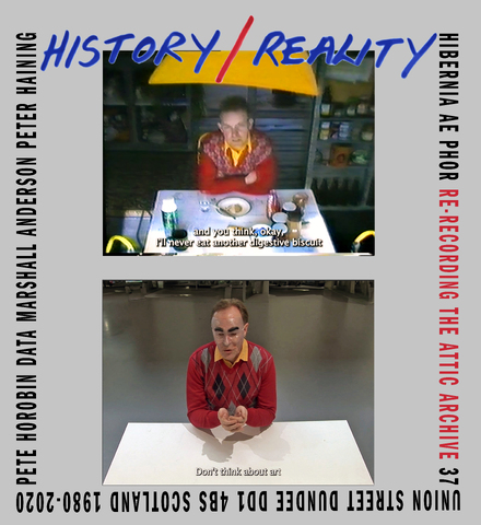 A digital artefact featuring documentation from the performance 'R E - R E C O R D I N G (Pete Horobin's 'Digestive Biscuit Action', 1986)'. (Output ID: 10131). This work was curated by Derek Horton and Gertrude Gibbons for a special anniversary edition of soanyway magazine. In response to the magazine's mission to serve as 'a platform for work that tells stories using a combination of words, images, and sounds', I aimed to create a digital artefact output documenting Pete Horobin's video performance 'Digestive Biscuit Action' (1986) as featured in my 2024 performance, 'R E - R E C O R D I N G' continuing Horobin's desire to 'encourage and stimulate the creation of new works' from existing material within The Attic Archive. Therefore, this digital artefact documents my attempt to preserve and disseminate Horobin's original work, which is otherwise hidden in the archive, through performance-making as a new artwork in its own right.