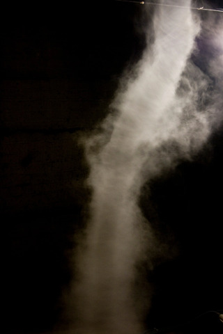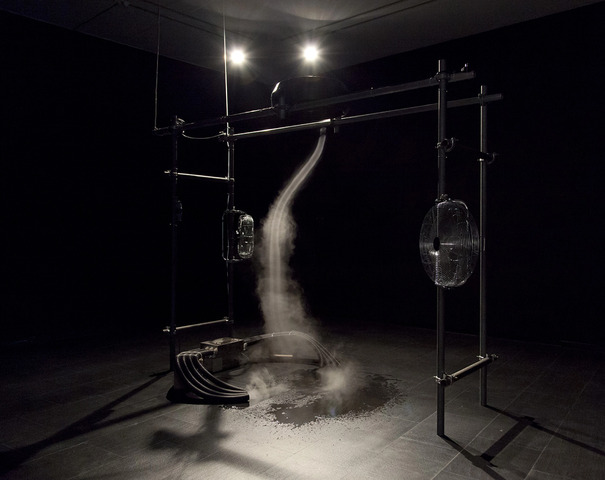 The Limitations of Logic and Absence of Absolute Certainty is an experiment. The piece sets up the conditions necessary to create a tornado. Utilising only what it necessary, moving air turns water vapour into a fierce vortex. In its simplicity and immediacy the piece aims to give direct contact with the awe, fear and beauty of the Romantic sublime.