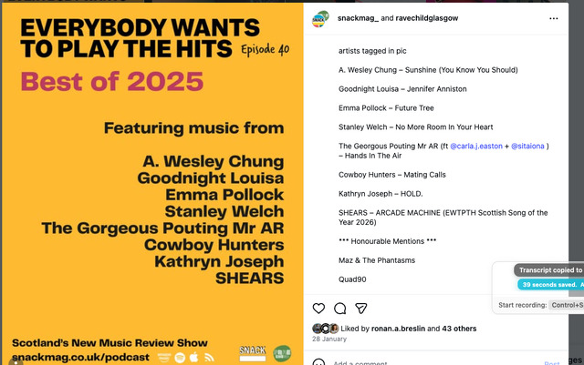 | Additional Information: | Modern times are harsh. Trump is in power; tech bros are trashing the news agenda, and far-right loudmouths are lapping up undeserved attention .... but the "Gorgeous, Pouting Mr AR" is seeking some reconciliation. "Hands in the Air" recounts Mr AR's dismay when a close friend ventured to this dark side online. The song reaches out to this friend in hope. The song features vocals from acclaimed singer-songwriter Carla J Easton (https://www.carlajennifereaston.com) and esteemed actor/musician/artist Sita Pieraccini (https://sitapieraccini.wordpress.com/). Fuelled by the finest wines known to mankind and dark adrenaline, the dynamic duo of Carla and Sita delivered stellar performances befitting the themes of the track on a frigid February evening a few years ago. The searing guitar solo was played by Will Cole (son of legendary 80's artiste Lloyd Cole). https://thegingerquiff.com/singles-round-up-2025-february-part-4/ https://www.scotswhayhae.com/post/that-was-the-year-that-was-the-best-of-2025-podcasts-music https://www.instagram.com/p/DUDxpOjCCpn/ Scottish music sites Ravechild and Scots Whay Hae! featured the track in a list of best Scottish tracks of the year. |